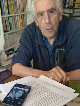 Estaba escribiendo por entonces un peculiar tratado psicoanalítico-socioantropológico-narrativo en el que unía sus observaciones sobre los orígenes del peronismo, los rituales de la máscara y sus viajes: el disparador había sido su rastreo de la inmigración sarda en la Argentina. De aquel encuentro surgió un trabajo fascinante que publicamos en italiano y español bajo los títulos Hombres en viaje-Uomini en viaggio (2007). La portada la hicieron Dante Bertini y Jorge Chapuis y fue una de las primeras deAyesha Literatura Ediciones.
