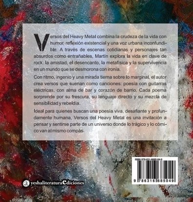 Ideal para quienes buscan una poesía viva, desafiante y profundamente humana, Versos del Heavy Metal es una invitación a pensar y sentirse parte de un universo donde lo trágico y lo cómico van al mismo compás.